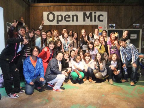 “Group photo!!” ボランティアスタッフ、出演者と一緒に。